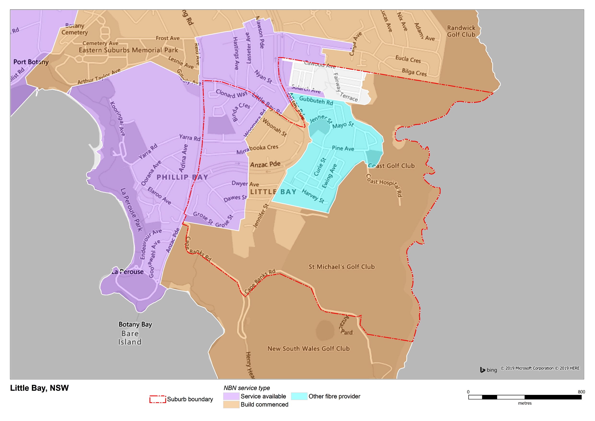 - Image illustrating NBN Co’s rollout in Little Bay (Prince Henry is the small blue area labelled ‘Other fibre provider’)